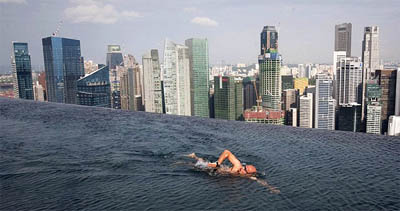 Wie wäre es, eine andere Art von Urlaub zu genießen. Wo letzten Endes doch immer nur das Gleiche passiert, wird dieses Hotel, hier, zur Erfüllung mancher Reisenden. Statt blauem Meer, das Häusermeer im Hintergrund.