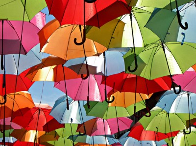Diese außergewöhnliche Installation wurde kürzlich in Águeda, Portugal entdeckt. Leider kennt man den Künstler nicht, der hinter dem Projekt steckt. Ein Spaziergang unter diesem Regenbogen, von Hunderten von Sonnenschirmen, macht jedenfalls gute Laune.