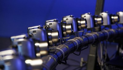 Das ist richtig: Ein Kameraring mit 100 Kameras, für einen extrem sauberen 360-Grad-Blick auf das Objekt, das sich gerade im Ring befindet, gefroren in Zeit und Raum. Alle am Ring befindlichen 100 DSLR lösen zur gleichen Zeit aus. Der griechische Fotograf Theodoros Tziatzios von Real Creations hat sich diese Bühne für Timefreeze-Videos a la Matrix geschaffen. Das “making-of-video” nach dem Break.