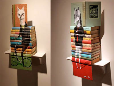 Buch auf Buch, Buch neben Buch und Buch aufgestellt. So entstanden diese beeindruckenden Kunstwerke. Eine kreative Darstellung, um Bücher zu präsentieren. Doch darauf kommt es dem Künstler gar nicht an. Mike Stilkay malt seine Gemälde auf Bücherrücken und Bücherwände, während die meisten Maler Leinwände benutzen…………