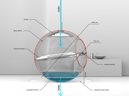Der Designer Alexander Schukowski hat die genialsten Badewannen unserer Zeit erfunden. Eine einfache Glaskugel. Die “Bathsphere”, eine an der Decke aufgehängte Glas-Blase. Grenzen zwischen Badezimmer und Schlafraum verschwinden.