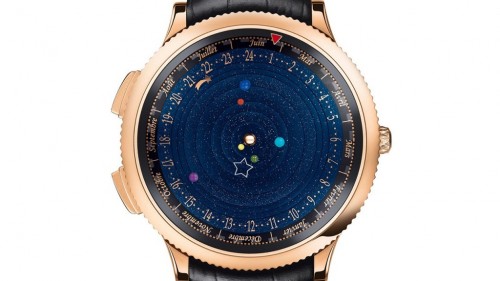Neben der Zeitmessung durch eine Sternschnuppe, die entlang der Außenzone dreht, ist die Uhr mehr gekennzeichnet von der genauen Rotation und Darstellung der Erde mit fünf anderen Planeten. Merkur absolviert so eine Umdrehung in 88 Tagen Venus benötigt 224 Tage und die Erde genau ein Jahr,. in 687 Tage Mars, Jupiter in 12 Jahren und Saturn – der auf dieser Uhr der Sonne am entferntesten liegt, braucht für eine ganze Umdrehung 29.5 Jahre. Es ist eine sehr komplexe Uhr der höchsten Uhrmacherkunst. 396 Einzelteile sorgen für die Bewegung der Planeten aus Schmuckstein. Erwartungsgemäß ist die Midnight Planétarium nicht gerade günstig. Die Uhr soll dieses Jahr erscheinen und etwa 180.000 Euro kosten.