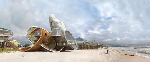 Spanischer Designer Dionisio Gonzales entwirft surreale Häuser die Naturkatastrophen wie Wirbelstürme überstehen können. Diese fiktiven Gebäude aus Eisen und Beton sind Einzelstücke und ähneln Bunkern und Raumschiffen. Es sind Entwürfe mit dem Titel “Dauphin Island”. Das Projekt wurde in Gonzales erste Einzelausstellung in der Yusto / Giner Kunstgalerie in Marbella, Spanien unter dem Titel “Architecture for Resistance” gezeigt. Weitere Häuser nach dem Break……