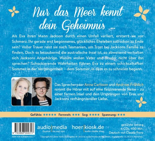 Nur das Meer kennt dein Geheimnis…. Als Eva nur wenige Monate nach der Hochzeit ihren Mann Jackson durch einen Unfall verliert, erstarrt sie vor Schmerz. Ihr gerade erst begonnenes glückliches Eheleben soll schon zu Ende sein? Eva fühlt sich völlig allein in ihrer Trauer und reist nach Tasmanien, um Trost bei Jacksons Angehörigen zu finden. Doch so bezaubernd die australische Insel ist, so abweisend verhält sich Jacksons Familie. Warum wollen sein Vater und sein Bruder partout nicht über ihn sprechen?
