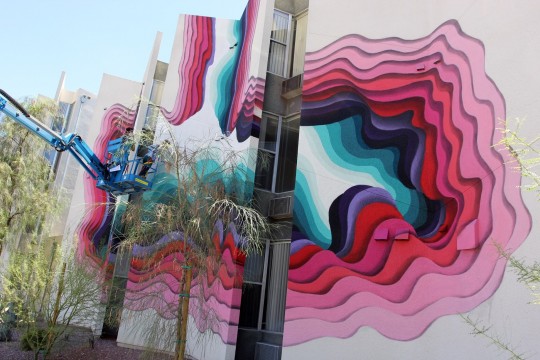Der Hamburger Künstler 1010 hat in Las Vegas vor wenigen Tagen sein neuestes Wandbild fertiggestellt. Das riesige Mural, das sich über eine dreigeteilte Hausfassade erstreckt, entstand auf Einladung von Justkids im Rahmen des Life Is Beautiful Festivals in der US-amerikanischen Stadt Las Vegas. Die Arbeit an dem beeindruckenden Mural hat insgesamt fünf Tage gedauert. Mehr Fotos gibt es auf streetartnews.net.