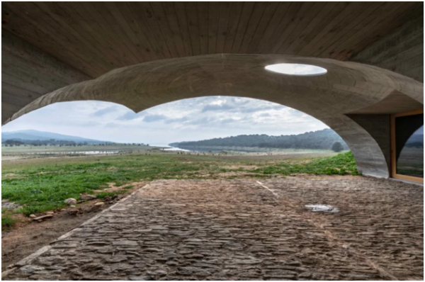 Das in Lissabon ansässige Unternehmen Aires Mateus hat ein fast unsichtbares Haus in unmittelbarer Nähe des Alqueva-Sees in Südportugal fertiggestellt. Das für einen Privatkunden fertig gestellte „Haus in Monsaraz“ wird mit einem Gründach gekrönt, das als Erweiterung der umgebenden Landschaft erscheint. Das Anwesen ist nur 174 Quadratmeter groß und belegt unauffällig das 21.100 Quadratmeter große Grundstück.