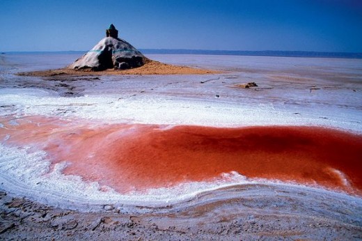 Bei der Wanderung durch den Canyon, erkärt Habib, dass wir uns über dem Meeresboden befinden, kaum zu glauben. Überall liegen Muscheln, die das Meer von Millionen von Jahren hinterlassen hat, und damit ein ganzes Bergmassiv bildet. Was für eine Hitze über dem tückischen Sumpf, unser Fahrer fährt auf dem befestigten Damm über den großen Salzsee “Chott el Djerid”. Rechts und links glitzern die großen Salzkristalle, wie Diamanten, auf der Kruste des vertrockneten Sees. Auf breiter Straße, mitten in einem Trockengebiet, das sich nach Regenfällen in einen riesigen See verwandelt, taucht in der Ferne eine Geisterstadt auf, die ich bis dahin nur im Film oder auf Fotos gesehen habe. Es ist so heiß, daß meine Lippen brennen, „die armen Arbeiter, die einmal diese Piste ins Chott bauen mussten, ich empfinde große Hochachtung, ob die das überlebt haben?“