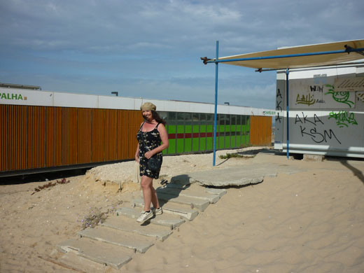 Von der Station “Nova Praia” bis “Fonte da Telha”, 9 km immer am Meer entlang. Die Bahn fährt, genauer gesagt, eher hopelnd durch die beeindruckende Dünenlandschaft und hält an paar Strandbars und Stationen an…